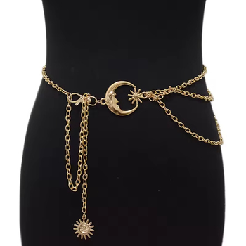 Catene da Vita in Lega Metallica con Motivo Luna e Sole, Stile Europeo-Americano, Accessori Vintage per Abiti e Pantaloni
